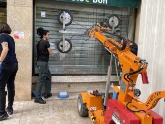 Votre Miroiterie Nice pose aussi votre vitrine avec camion grue avec ventouses, appelez-nous pour en savoir plus !